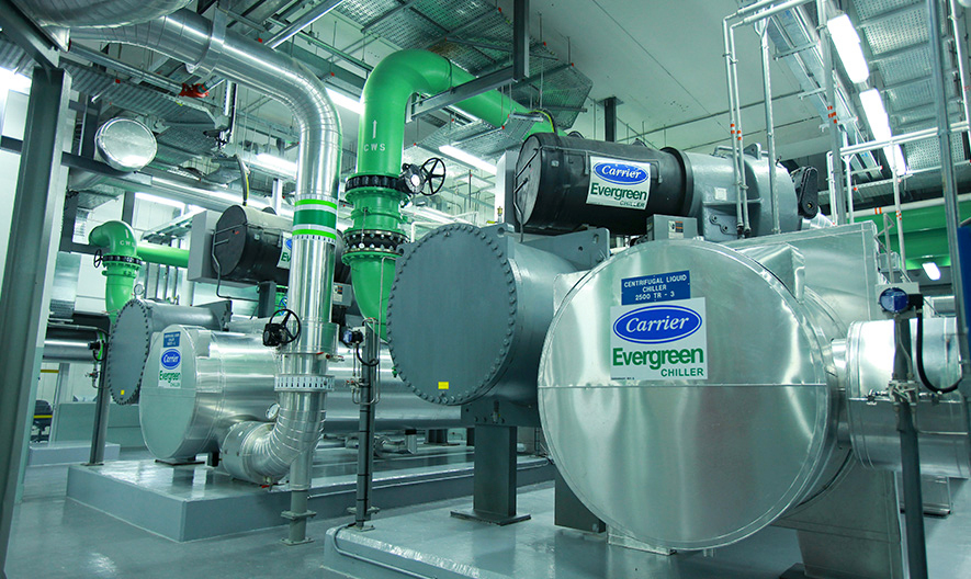 تصميم وتنفيذالأعمال الميكانيكية والكهربائية والسباكة وأنظمة تبريد المناطق في أكبر مركز تسوق في سلطنة عُمان وتزويده بمحطة تبريد بقدرة 12,500 طن تبريد.